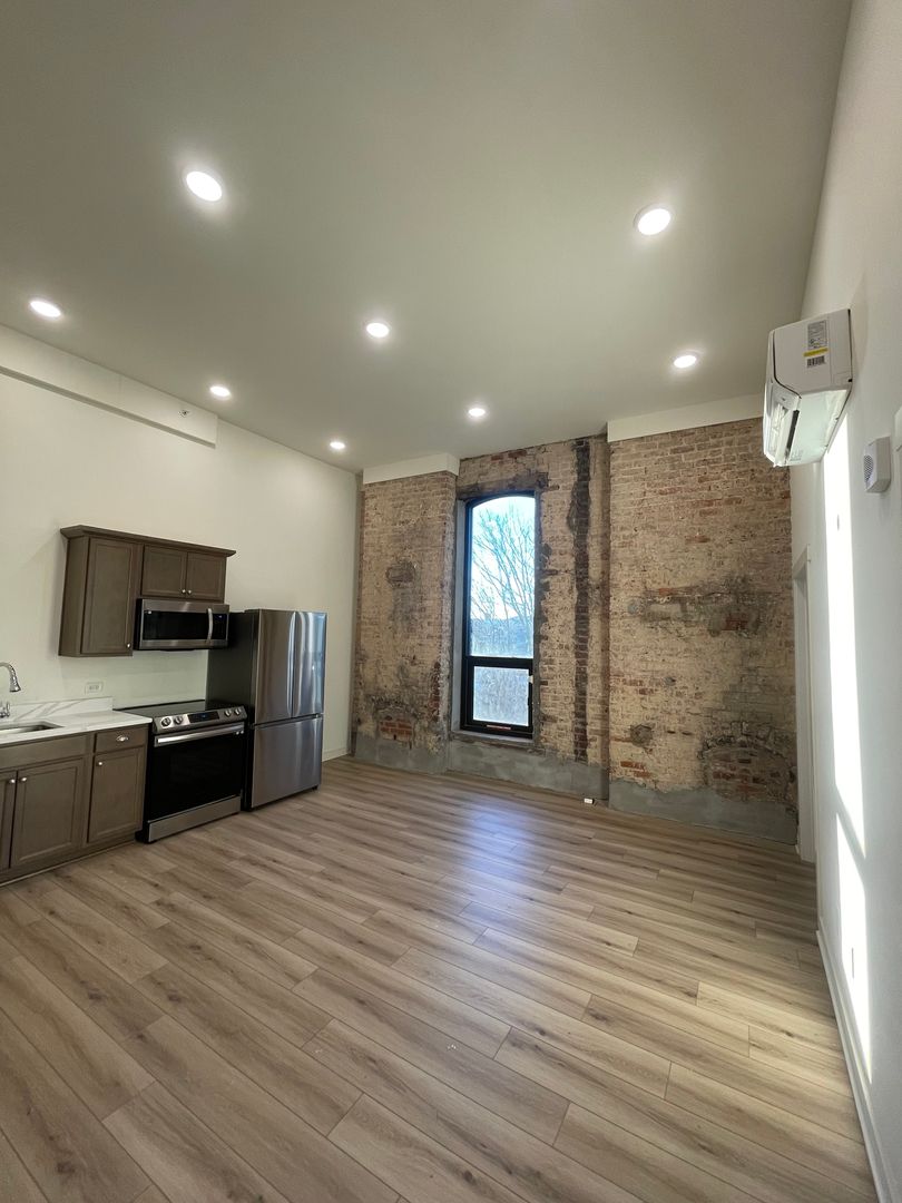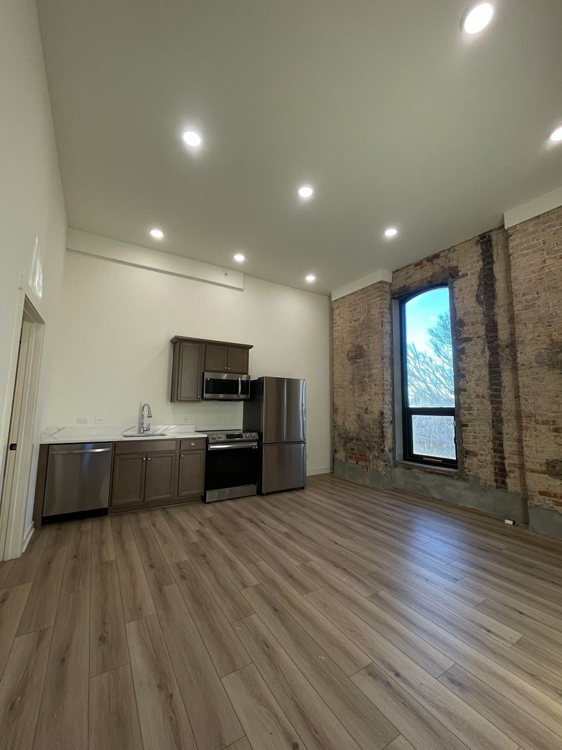 2 bedroom apartment with stainless steel appliances and stackable washer dryer included.