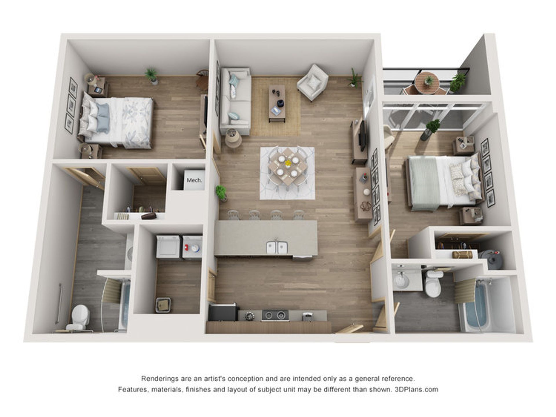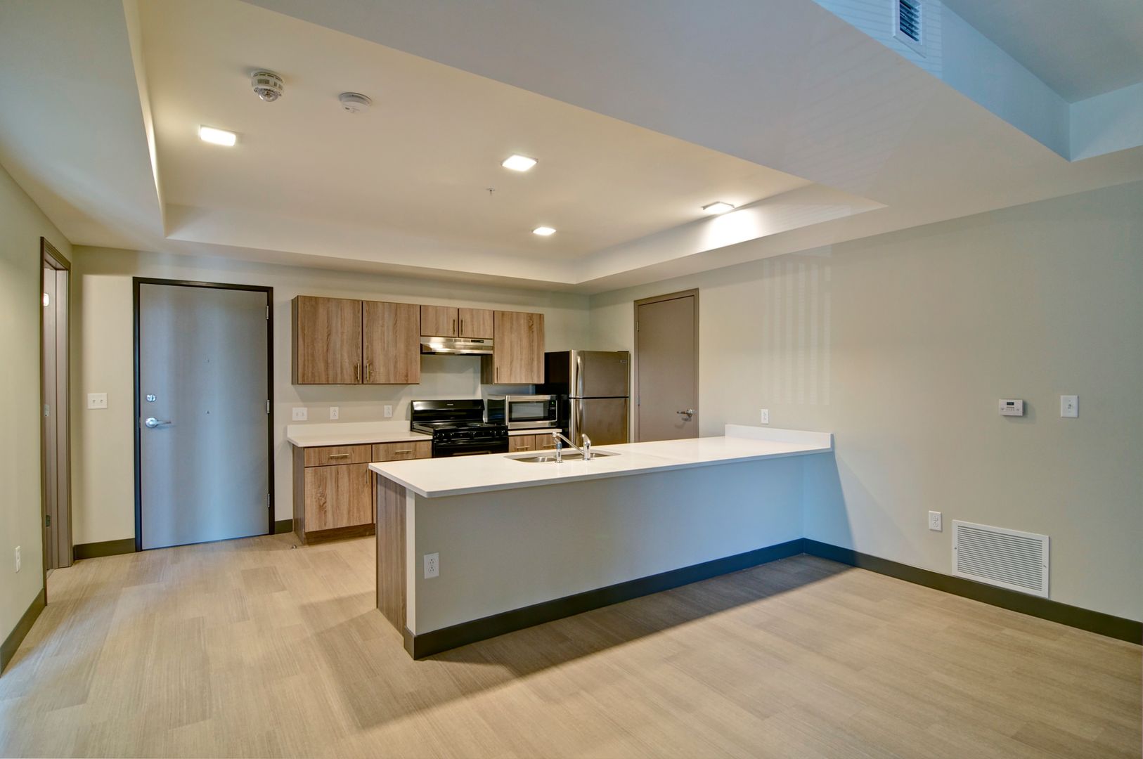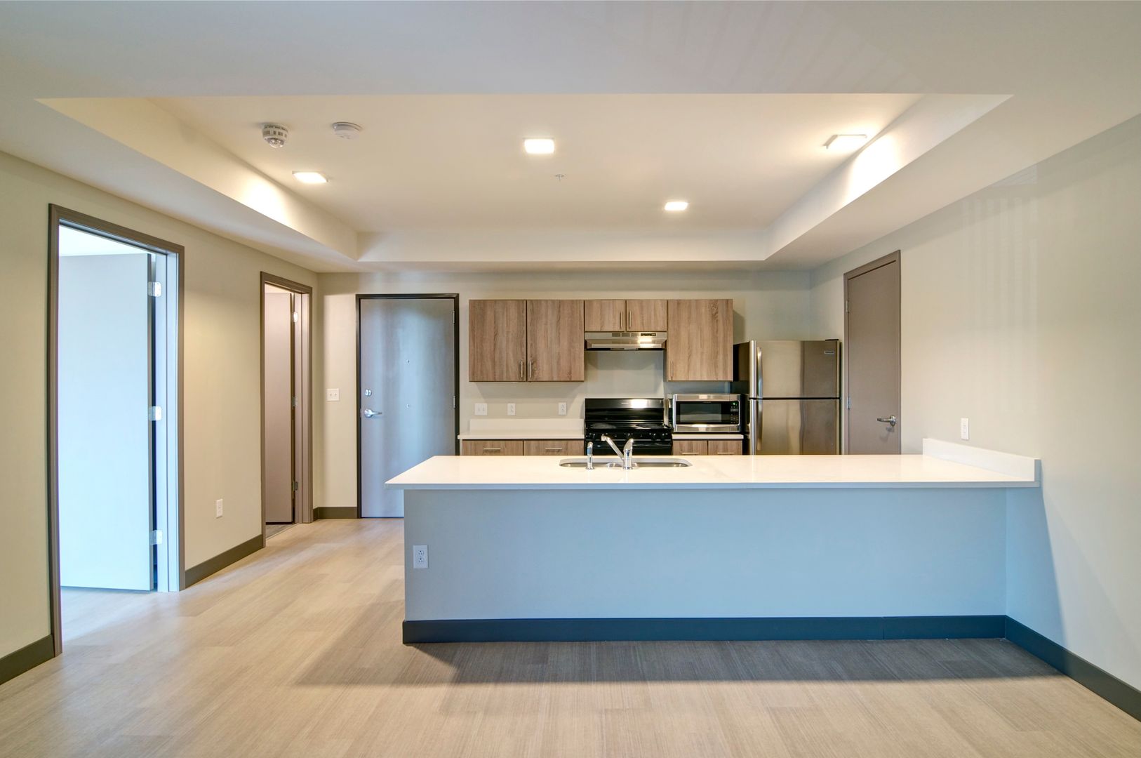 Bedrooms located on opposite sides of the apartment make it perfect for privacy. Balcony space and open concept floor plan make it perfect for hosting gatherings with river, downtown, and park views. Modern cabinetry, stone countertops, and vinyl plank flooring. Apartment comes with a washer & dryer!