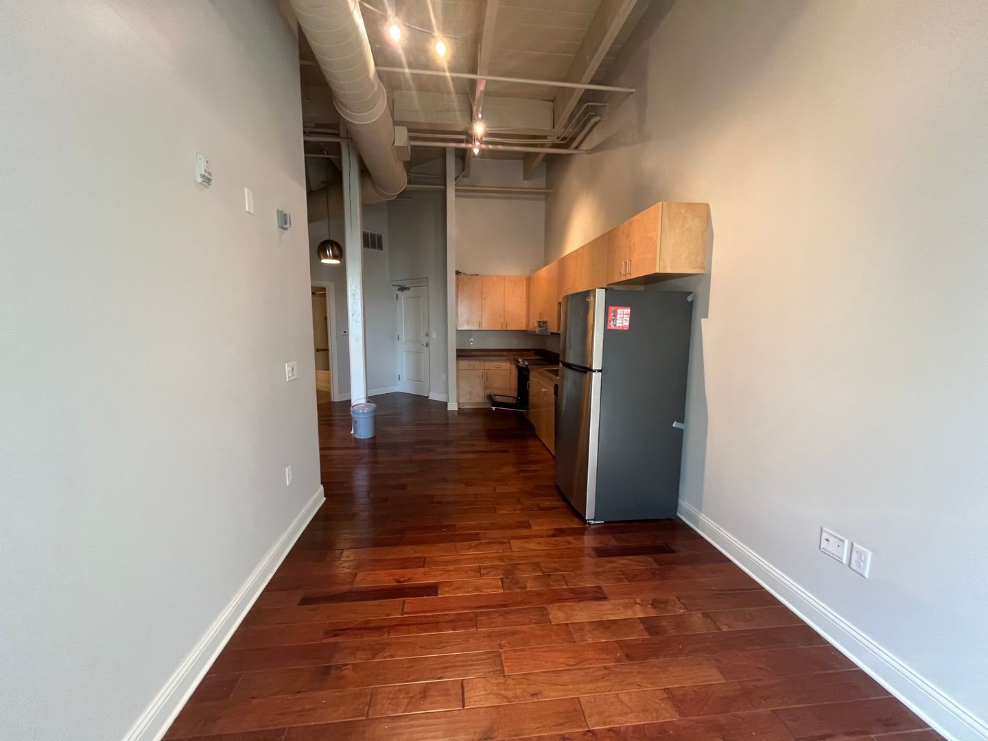 This open concept one bedroom apartment features hardwood floors, exposed brick, and stainless appliances. This apartment is also ADA Compliant. Natural light pours into the living room and bedroom from large windows with great views. In-unit washer and dryer are included.